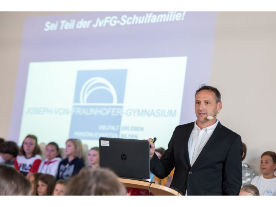 Der langersehnte erste Schultag am Joseph-von-Fraunhofer-Gymnasium war für die 112 neuen Schülerinnen und Schüler der fünften Klassen, aber auch für den neuen Schulleiter Uwe Mißlinger ein ganz besonderer Tag. Mit "Welcome everybody" begrüßten die Chorklassen ihre Mitschüler und nahmen so schon etwas von der Aufregung, mit der die Neuen am Morgen in die Schule gekommen waren. Auch der Direktor gab zu, dass er etwas nervös war. War es doch auch für ihn der erste offizielle Schultag als Schulleiter.