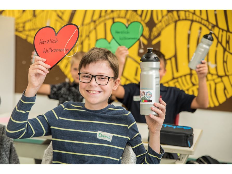 Nach der Begrüßung und allgemeinen Informationen ging es für die Eltern ins Elterncafe und für die Fünftklässler ins Klassenzimmer: Mitschüler, Stundenplan, Klassenlehrer, Schulbücher - es gab viel zu entdecken. Mit dabei waren auch immer die Tutoren der 10. Klassen, die die Fünftklässler das kommende Jahr über begleiten und ihnen mit Rat und Tat zur Seite stehen werden. Von ihnen bekamen sie kleine Schultüten geschenkt und vom Förderverein der Schule wurden sie mit Trinkflaschen versorgt.