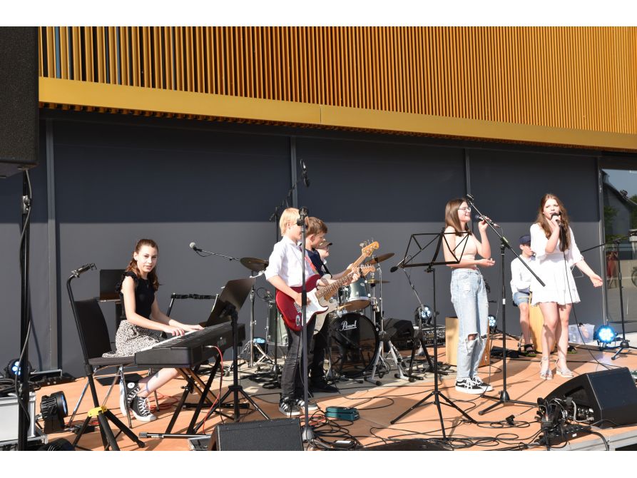 Los ging es mit den Bläserklassen, der Juniorband und der Jazzband des Gymnasiums. Dann folgten die beiden Schulbands „This is us“ und die „RockSocks“ und anschließend das Duo Marie und Josef und die Musiker der Familie Fischer. Bei gekühlten Getränken und im Schatten der zahlreich aufgestellten Sonnenschirme konnte man es sich so richtig gut gehen lassen. Wer Lust hatte, konnte auch die neue Fraunhofer-Festschrift erwerben und gleich ein wenig darin schmökern. Natürlich gab es von den Fischerman’z auch die ein oder andere kulinarische Köstlichkeit.