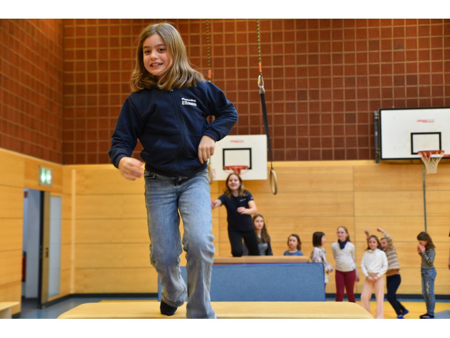Richtig sportlich ging es sowohl in der Kletterhalle als auch in der Dreifachsporthalle bei den Stützpunkten Fußball, Handball und Rhythmische Sportgymnastik zu. Die Kinder durften alles ausprobieren und bei einem Hindernisparcours ihre Geschicklichkeit unter Beweis stellen. Wer dann Hunger bekam, wurde in der Pausenhalle mit verschiedenen kulinarischen Köstlichkeiten und in den Räumen der Offenen und der Gebundenen Ganztagsschule mit leckerem Popcorn und Hotdogs versorgt. Für die besondere musikalische Umrahmung sorgten die Ensembles und Solisten des Fraunhofer-Gymnasiums, sodass viele Eltern bis in den späten Nachmittag hinein in gemütlicher Atmosphäre beieinandersaßen, sich unterhielten und den Freitagnachmittag entspannt ausklingen ließen.