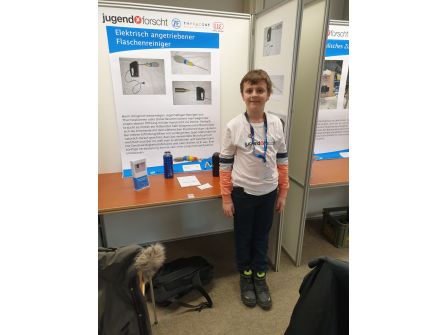 Mit seinem „Gehhilfenparkplatz“ löste Lukas Gruber aus der fünften Jahrgangsstufe ein Problem, das jeden betrifft, der auf Krücken oder einen Gehstock angewiesen ist. Möchte man die Gehhilfe kurz abstellen und lehnt sie dabei an eine Wand oder gegen eine Tischkante, so besteht die Gefahr, dass sie seitlich wegrutscht und zu Boden fällt. Genau dies wird verhindert, wenn man die Gehhilfe in dem von Lukas gebauten „Parkplatz“ abstellt. Darüber hinaus erhielt er auch einen von der Stadt Passau vergebenen Sonderpreis.
