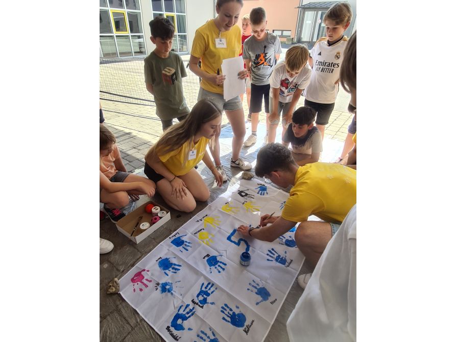 An diesem Nachmittag wurden sie zunächst mit ihren Eltern vom Schulleiter OStD Uwe Mißlinger in der Pausenhalle herzlich begrüßt. Die zukünftigen Fraunhoferschülerinnen und Fraunhoferschüler erfuhren dann, in welche fünfte Klasse sie kommen werden und gemeinsam mit ihren Tutorinnen und Tutoren verbrachten sie einen unterhaltsamen Nachmittag im neuen Klassenverband. Der Spaß kam beim ersten „Beschnuppern“ sicher nicht zu kurz: Neben ersten Kennenlernspielen wurde auch das neue Schulhaus in einer Rallye erkundet und eine Klassenfahne mit Handabdrücken gestaltet.