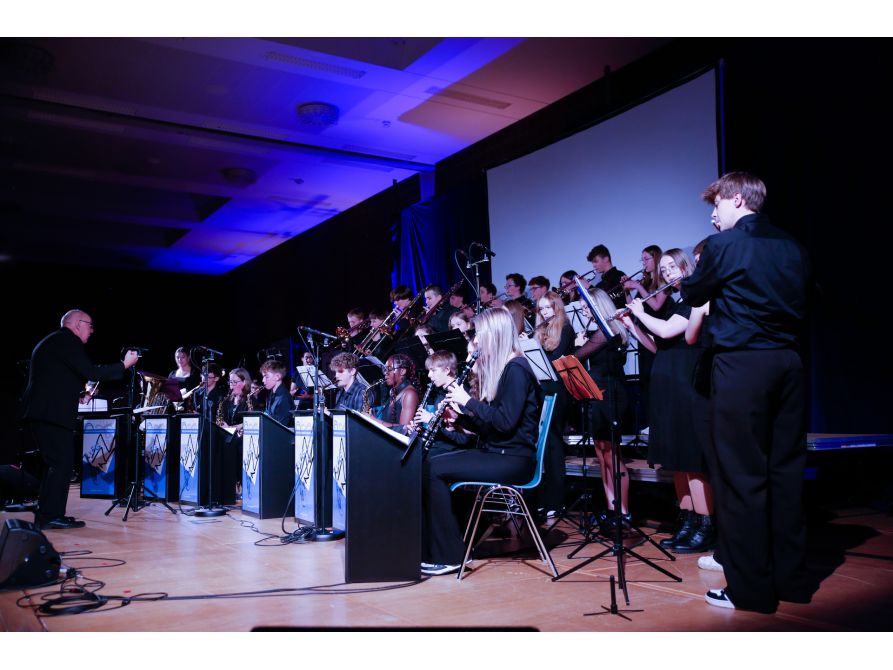 Verschiedene musikalische Arrangements sorgten für Abwechslung zwischen den kabarettistischen Stücken. Die schuleigene Jazzband unter der Leitung von Hubert Bauer, bestehend aus über 35 Musikern, begeisterte mit Stücken von Astor Piazzolla ("Libertango"), Joe Zawinul ("Birdland") und Leslie Bricusse. Der Song "Feelin' good" des Letzteren wurde von Sängerin Marie Schönberger sehr gekonnt begleitet. Das Vokalensemble BonaVox unter der Leitung von Andreas Ernst führte dem Publikum vor, wie sich das Lied "Wenn ich ein Vöglein wär" in verschiedenen Stilrichtungen wie z. B. Tango, Funk oder Reggae anhört. Es gab danach noch, dem aktuellen Anlass entsprechend, ein Geburtstagsständchen: Zusammen mit dem Publikum sangen BonaVox den Kanon "Viel Glück und viel Segen, lieber Förderverein, schön, dass es dich gibt."