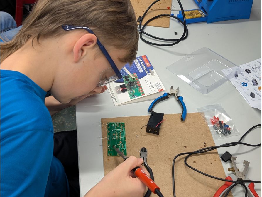 Technik prägt unsere Welt – und Kinder sind von Natur aus neugierig darauf, wie Dinge funktionieren. Im Kurs „Schüler entdecken Technik“ erlebten Schülerinnen und Schüler der 6. Jahrgangsstufe im Digitalen Labor am Joseph-von-Fraunhofer-Gymnasium Technik ganz praktisch: Sie löteten elektronische Bausätze unter Anleitung Schritt für Schritt zusammen. Dabei lernten sie nicht nur, wie elektronische Bauteile funktionieren, sondern auch, wie aus einzelnen Komponenten ein funktionsfähiges technisches System entsteht.