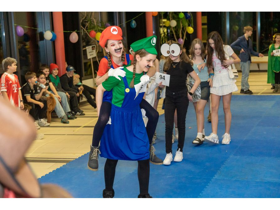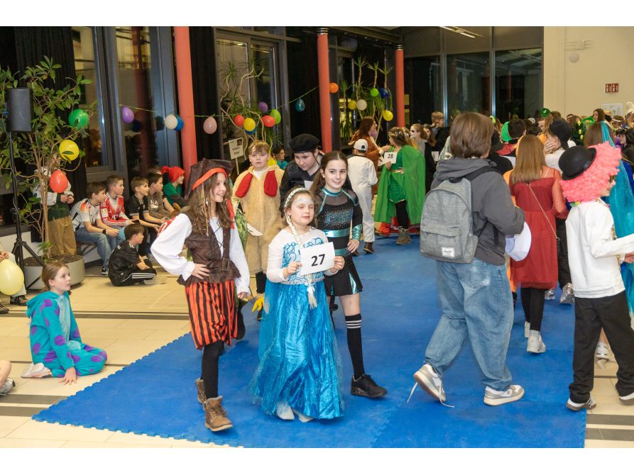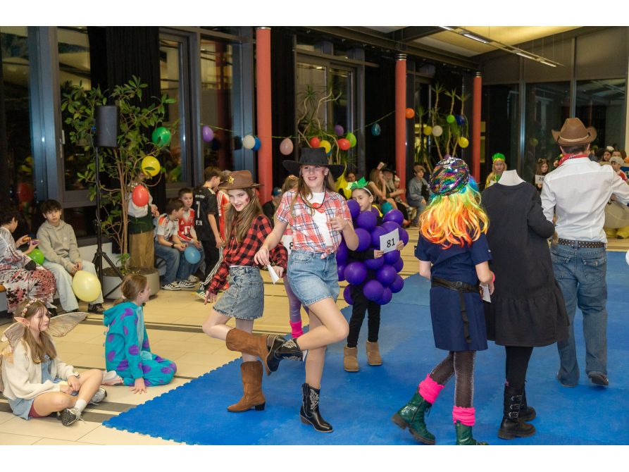 Elf Spielestationen sorgten für Unterhaltung: Beim Bobbycar-Rennen jagten die Teilnehmenden um die Wette, während beim Faschingsquiz Fachwissen gefragt war. Vom Sackhüpfen bis Limbotanz waren alle zum Mitmachen motiviert. Auch einige kostümierte Lehrkräfte hatten sich unter das Partyvolk gemischt.