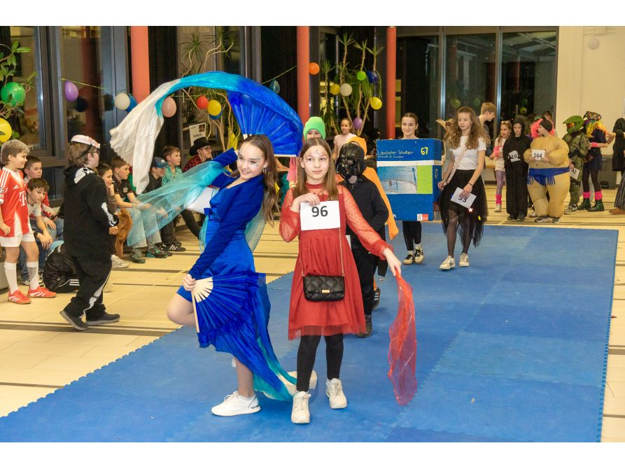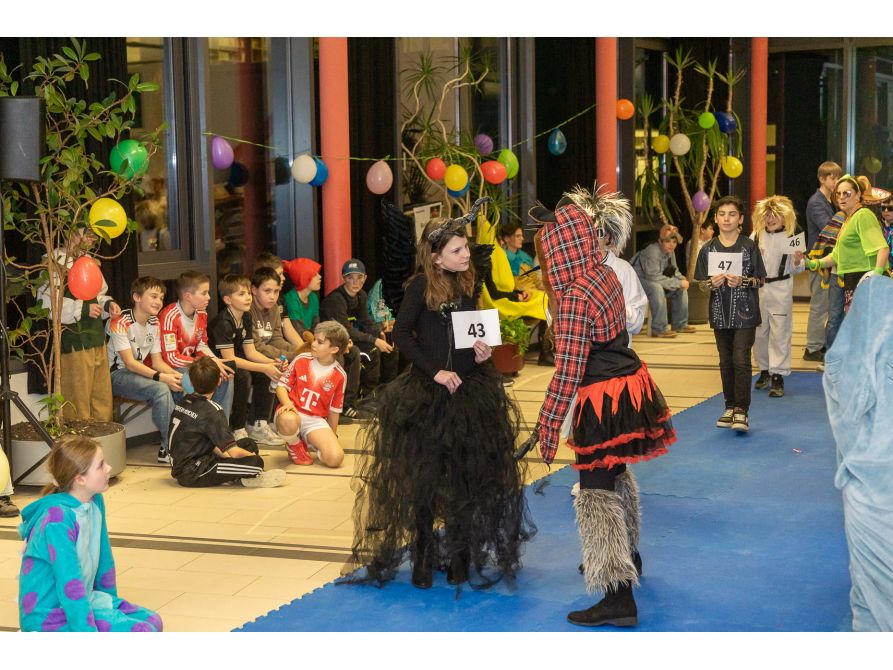 Ein weiteres Highlight des Abends war sicher für viele die Disco in der vollgefüllten Pausenhalle. Kräftig angeheizt wurde dabei die Stimmung vor allem von einigen Tutorinnen und Tutoren, die gemeinsam mit den fantasievoll kostümierten Kindern zu aktuellen Faschingshits ausgelassen tanzten.