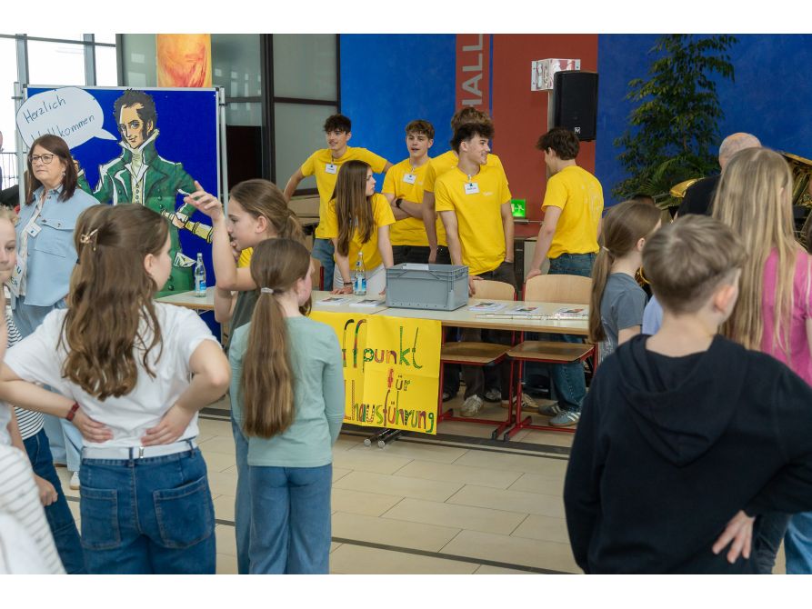 Die Naturwissenschaften begeisterten mit spektakulären Shows wie den „Chemiebusters“, dem „Alchematar – Herr der Elemente“ sowie faszinierenden Experimenten aus der Physik. Außerdem gab es bei der Biologie-Fachschaft eine Raubtierchen-Fütterung und man durfte Blumensamenbomben basteln. Wer sich auspowern wollte, kam in der Sporthalle beim Fußball, Klettern oder Bogenschießen voll auf seine Kosten. Der Innenhof lud unterdessen dazu ein, das breite Angebot der Ganztagsschule, die verschiedenen Spielmöglichkeiten und den Freizeitraum kennenzulernen. Abgerundet wurde das Programm durch den Vortrag des Schulleiters in der Mensa, der den Eltern informative Einblicke in das pädagogische Profil der Schule gab.
