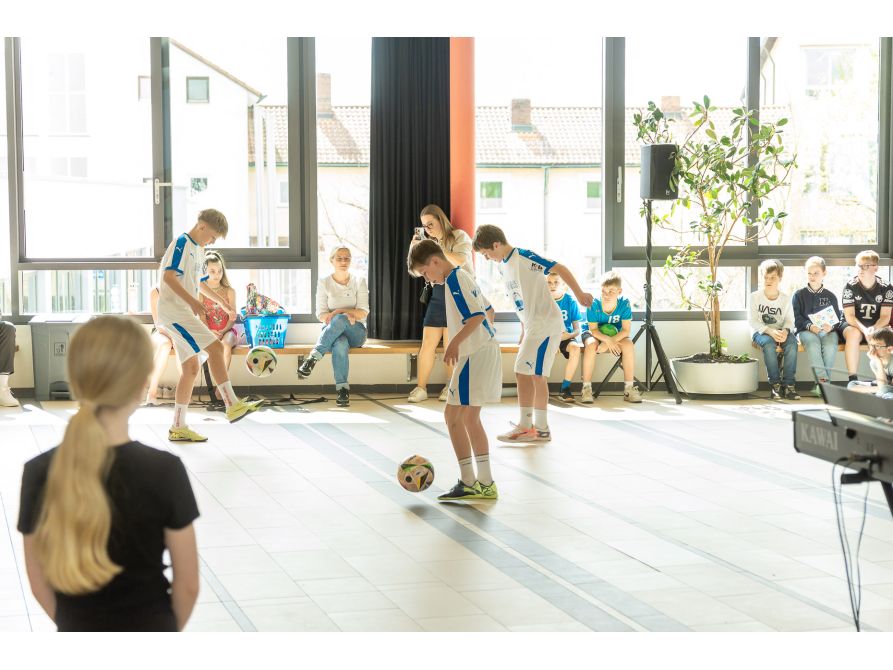 Spannende Experimente, lustige Spiele und vor allem ganz viel zum Entdecken gab es am „Tag der offenen Tür“ am Joseph-von-Fraunhofer-Gymnasium. Die Schule präsentierte sich am Freitagnachmittag in ihrer ganzen Vielfalt und zeigte, dass Schule mehr ist als Unterricht und Hausaufgaben. Der spannende und informative Nachmittag begann in der vollbesetzten Pausenhalle, in der die Aufregung bei den Kindern und auch bei so manchen Eltern deutlich zu spüren war. Nach der musikalischen Einstimmung durch die Jazzband und der Begrüßung durch die Chorklassen eröffnete der Schulleiter Uwe Mißlinger den Tag der offenen Tür zusammen mit der Unterstufenbetreuerin Alexandra Fuchs. Sie freuten sich über die zahlreichen Gäste und erklärten kurz, was es an diesem Tag alles zu entdecken gab. Besonders beeindruckend war die sportliche Vorführung der Stützpunkte Fußball, Handball und Rhythmische Sportgymnastik, die die Energie und Vielfalt des Schullebens am Fraunhofer perfekt einfing.
