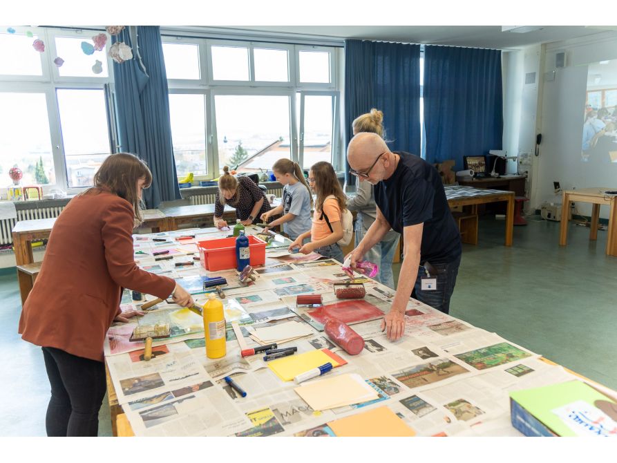 Das Programm war vielfältig und spannend und stellte die Stärken der Schule in den Mittelpunkt. Im Erdgeschoss drehte sich alles um die Welt der Fremdsprachen. Bis zu fünf Sprachen kann man am Fraunhofer lernen, angefangen mit Englisch über Latein und Französisch bis hin zu Spanisch und Tschechisch. Im 1. Stock präsentierten sich unsere Wertebotschafter, das P-Seminar „Schule ohne Rassismus – Schule mit Courage“ und außerdem gab es auch im Computerraum einiges zu entdecken. Im 4. Stock zeigten unsere Kunst- und Musikfachbereiche beeindruckende Einblicke in ihre kreative Arbeit. Bei den Vorführungen der Bläser-, Chor- und Streicherklasse war der schönste Raum der Schule, der wunderbar gelegene Musikpavillon mit herrlichem Blick auf die Bayerwald-Berge, bis auf den letzten Platz gefüllt. Bei den Künstlern konnte man kreative Drucke selbst gestalten.
