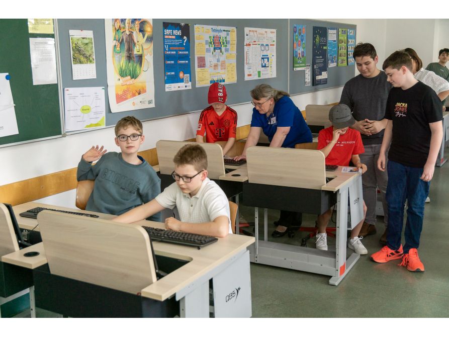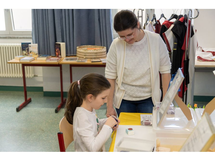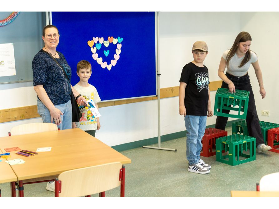 Anschließend konnten sich die kleinen und großen Gäste auf Entdeckungsreise durch das Schulhaus begeben. Die Tutoren der 10. Jahrgangsstufe führten die zukünftigen Fünftklässler in Kleingruppen durchs Haus. Anschließend konnten die Kinder mit ihren Eltern das Schulhaus auch spielerisch erobern: Mit dem „Spürnasen-Sammelpass“ ausgestattet, galt es, in den verschiedenen Fachbereichen Sticker zu sammeln. Wer mindestens vier Stationen absolvierte, durfte sich im digitalen Labor der Schule über ein kleines Geschenk freuen.
