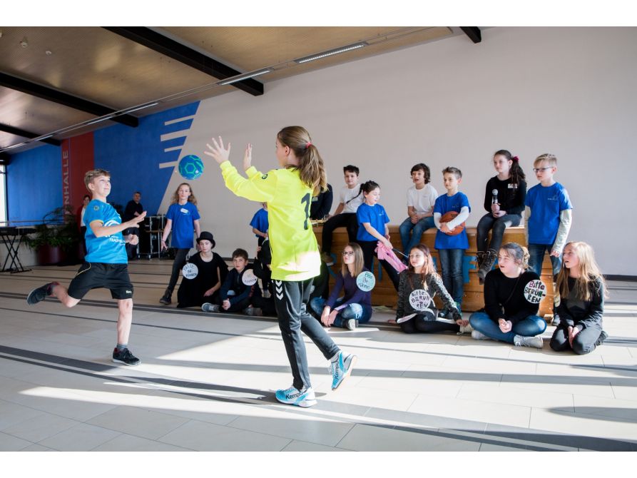 Im Sportbereich konnte man sich in verschiedensten Sportarten üben und somit auch wieder Smileys auf seinem Zeugnis sammeln. Sowohl die Fußballklasse und der Stützpunkt Fußball als auch die Sport-AG Handball präsentierten sich in Stationen und in der Kletterhalle konnte man sich das gesicherte Klettern am Seil ausprobieren. Zudem war in einer der drei Sporthallen noch ein Abenteuerparcours aufgebaut, der den Schülern einiges an Kondition abverlangte. Beim Bogenschießen konnte der sichere Umgang mit Pfeil und Bogen geübt werden und Interessierte wurden von dem Bogenschießlehrer und Naturpädagogen Stephan Magerl über dieses neue Wahlfach am Fraunhofer informiert. Der Stützpunkt Rhythmische Sportgymnastik begeisterte die Zuschauer mit tollen Vorführungen. Über die Schulskikurse in Mitterfirmiansreut und in der Flachau/Wagrain sowie über die Gebirgswanderwoche in Südtirol informierte eine Fotoausstellung.