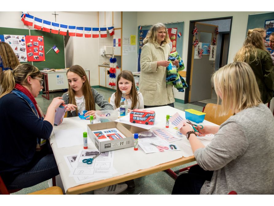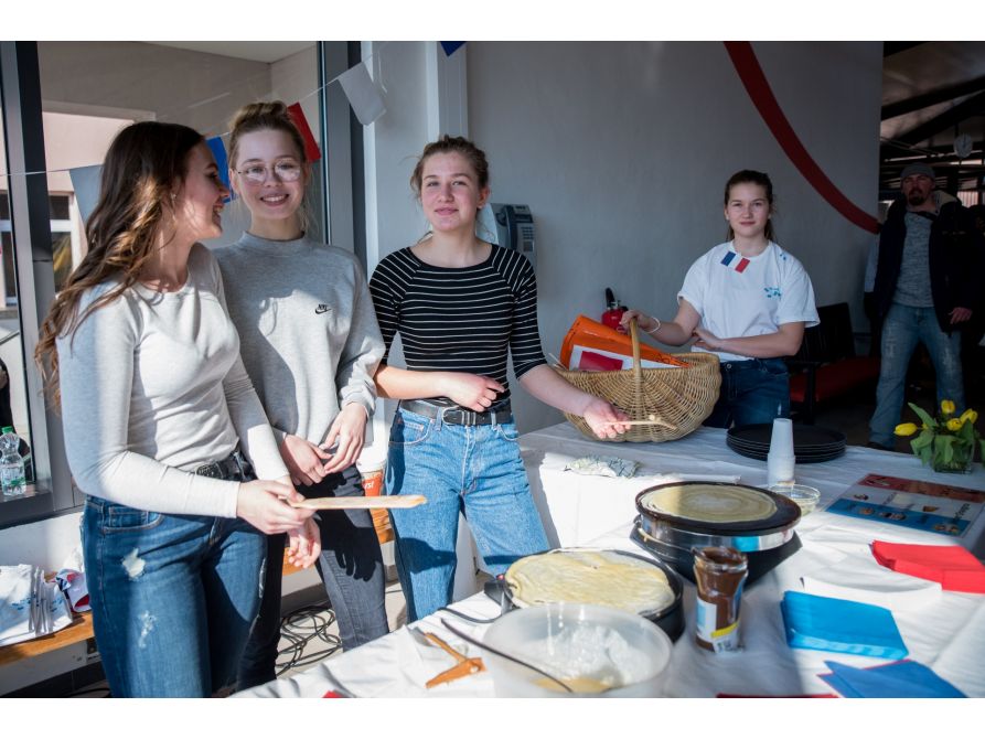 Ebenso kulinarisch verwöhnt wurde man in der Pausenhalle im französischen Bistro mit Crêpes, Quiche und Orangina sowie im Café der SMV mit Kaffee und Kuchen.