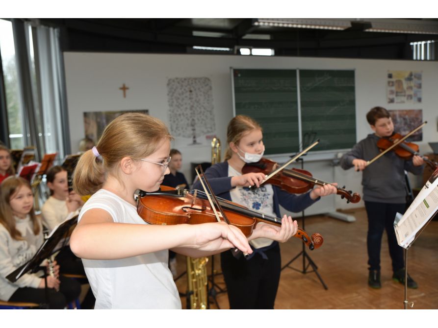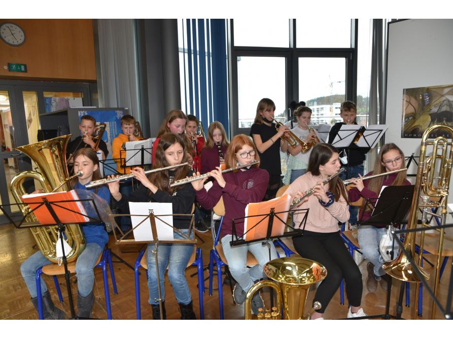 Überall gab es etwas zu entdecken. Spannende Sprachrätsel, mathematische Knobeleien, künstlerische Aktionen bis hin zu eindrucksvollen Experimenten, bei denen es blitzte und knallte. Dazwischen konnte man überall leckere Köstlichkeiten probieren. Bei Kuchen, Popcorn, Hotdogs, Crêpes und Bratwurst- und Steaksemmeln war für jeden Geschmack etwas dabei. Und auch bei den zahlreichen Workshops und Vorführungen konnte jeder mitmachen und sich so richtig austoben. Im vierten Stock der Schule wurden die Bläser- und die Chorklasse sowie die Streicherklasse vorgestellt. Den jungen Musikerinnen und Musikern war die große Freude anzusehen, endlich wieder einmal gemeinsam musizieren und vor Publikum auftreten zu dürfen.