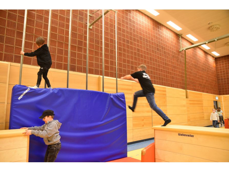 Der Tag der offenen Tür stand unter dem Motto „Finde dein Glück am Fraunhofer“ und so bekam jeder junge Besucher einen eigenen Glückspass, der im Laufe des Nachmittags mit Stickern gefüllt werden konnte. Während einige Viertklässler zusammen mit den Tutoren in kleinen Gruppen durchs Schulhaus streiften und sich schon einmal einen Eindruck verschafften, was an diesem Tag der offenen Tür alles geboten war, ging es für andere auf schnellstem Weg direkt in die Kletter- und Sporthalle. Dort wartete ein großer Hindernisparcours auf die Gäste und man konnte neben Fußball und Handball sein Glück beim Ostereiersuchen in der Boulderhalle gleich selbst probieren. In der Zwischenzeit informierte der Schulleiter die Eltern in Vorträgen über die Vielfalt des Fraunhofer-Gymnasiums, die an diesem Tag an allen Ecken zu sehen und hören war.