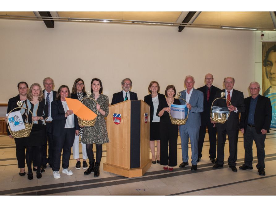 Geschenke bekamen aber auch die Ehrengäste des Festakts. Neben einer bereits zuvor erstellten und schön gerahmten Sieglitz-Karikatur erhielten alle Gäste ein Exemplar der neuen Fraunhofer-Festschrift, die erstmals an diesem Abend präsentiert und anschließend auch verkauft wurde. Alle Interviewpartner durften sich zudem über einen Stick mit der Fraunhofer-Dokumentation freuen und konnten so eine persönliche Erinnerung mit nach Hause nehmen.