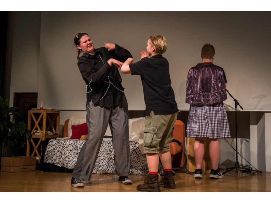 So konnten die Zuschauer erleben, wie die Prophezeiungen der drei Hexen (Leon Belkot, Alena Säckl, Bastian Trinker) in Erfüllung gingen: Macbeth (Savina Kulzer) tötet König Duncan (Damien Gürster), um selbst König zu werden. Diese Schuld lastet schwer auf ihm und seiner Frau Lady Macbeth (Laura Hecht), so dass diese sich selbst umbringt und Macbeth schließlich von Macduff getötet wird, so dass nun Malcom der rechtmäßige Thronerbe ist.