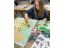 Im weiteren Verlauf wurden die Schülerinnen und Schüler autonomer, und jede/r arbeitete für sich an seinem eigenem Bildmotiv. Dabei nutzten sie nicht nur Pinsel, sondern experimentierten mit unterschiedlichen Materialien wie Farbrollen, Kreppband, Luftpolsterfolie und Auftragsmöglichkeiten wie dem Drip Painting.