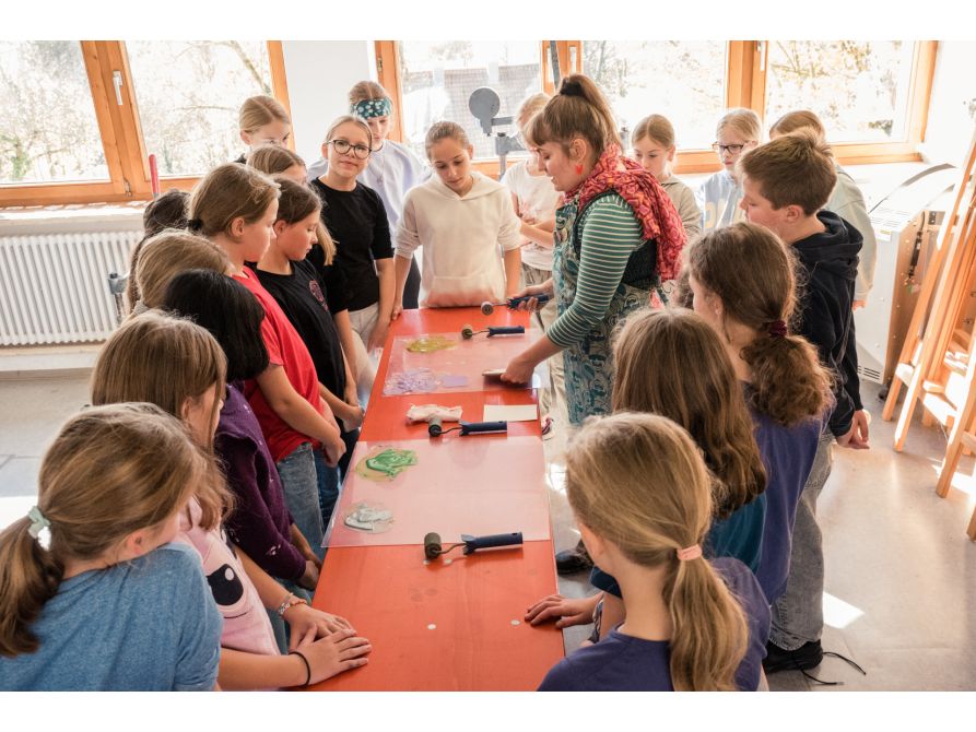 Der erste Projekttag führte uns in den KUNSTbeTRIEB Cham, wo sich Andi Dünne und Julia Breu als langjährige Kooperationspartner zusammen mit Kunstlehrerin Simone Seifert ein entsprechendes Programm überlegt hatten.