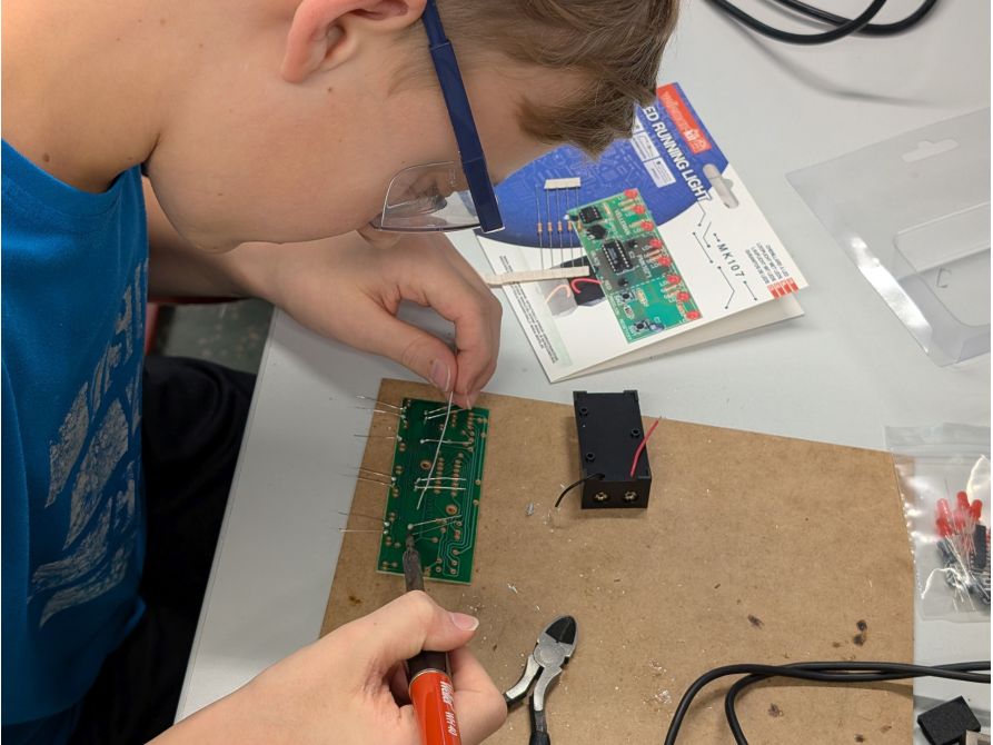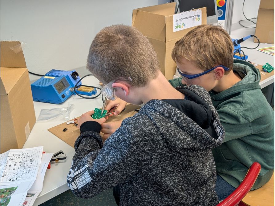 Technik prägt unsere Welt – und Kinder sind von Natur aus neugierig darauf, wie Dinge funktionieren. Im Kurs „Schüler entdecken Technik“ erlebten Schülerinnen und Schüler der 6. Jahrgangsstufe im Digitalen Labor am Joseph-von-Fraunhofer-Gymnasium Technik ganz praktisch: Sie löteten elektronische Bausätze unter Anleitung Schritt für Schritt zusammen. Dabei lernten sie nicht nur, wie elektronische Bauteile funktionieren, sondern auch, wie aus einzelnen Komponenten ein funktionsfähiges technisches System entsteht.