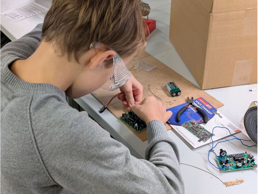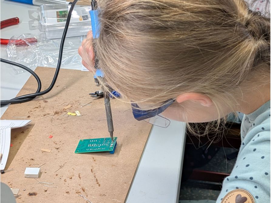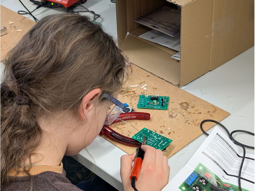 Auf dem Programm standen unter anderem ein LED-Lauflicht, ein Stimmenverzerrer, ein Klatschschalter und eine Kinderzimmer-Alarmanlage. Sämtliche Bausätze wurden unter der fachkundigen Anleitung erfahrener Tutoren der Firma Ensinger GmbH erfolgreich fertiggestellt und konnten am Ende des Kurses mit berechtigtem Stolz zusammen mit einer Teilnehmerurkunde mit nach Hause genommen werden. Neben dem fachlichen Wissen wurden auch soziale Kompetenzen gefördert. Teamarbeit, gegenseitige Unterstützung und gemeinsames Problemlösen spielten eine zentrale Rolle und trugen maßgeblich zu einer positiven Lernatmosphäre bei.