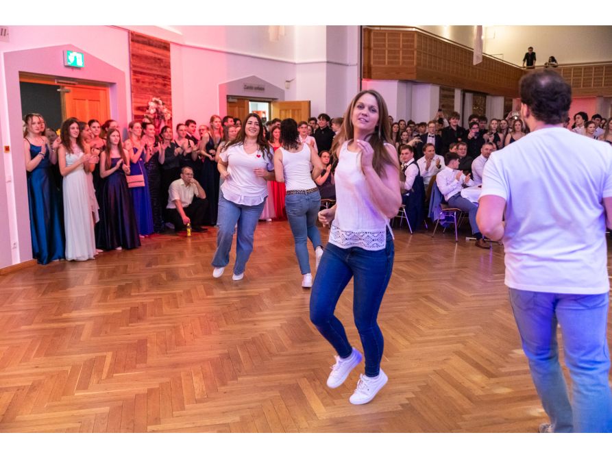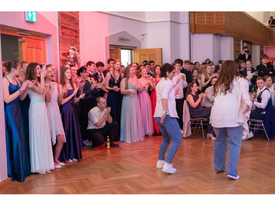 Pünktlich um 20 Uhr eröffneten unsere Schülersprecher Elinor Weiß und Lukas Lommer den Ball, bevor die Band „Prime Time“ mit ihren Klängen die Tanzfläche füllte. Ein besonderes Highlight war der Auftritt der Rock’n’Roll-Abteilung des SV Obertrübenbach, die mit temporeichen und akrobatischen Choreografien begeisterte – darunter sogar Stücke, die erst vor einem Jahr bei der Weltmeisterschaft in Prag zu sehen waren.