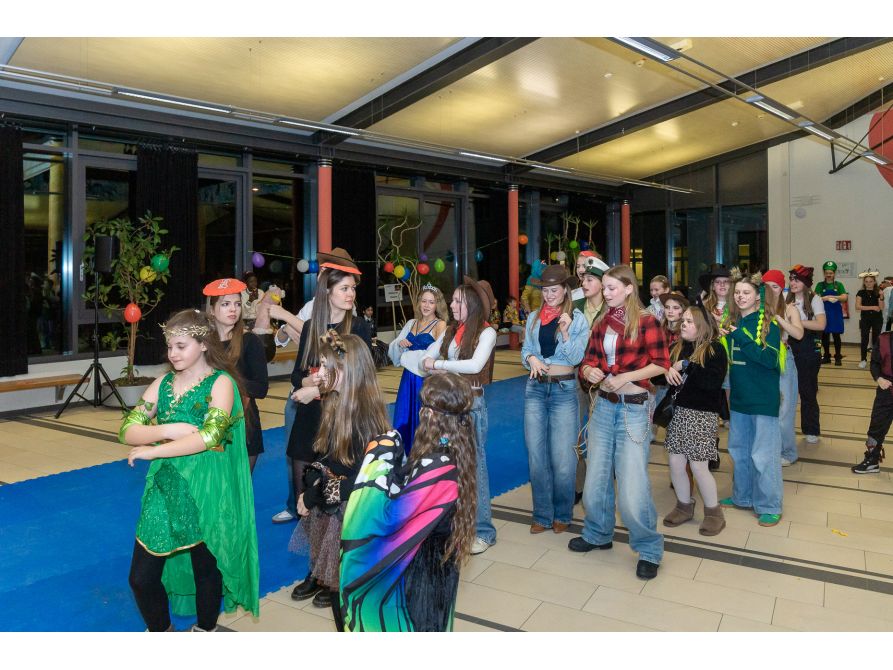 Tatkräftige Unterstützung bei der Planung und Durchführung erhielten die Lehrerinnen Frau Fuchs und Frau Habler von den Tutorenteams der 10. Jahrgangsstufe, die mit ihrem Einsatz dazu beigetragen haben, dass die Party zu einem unvergesslichen gemeinschaftlichen Erlebnis wurde. Mit den großzügigen Spenden der Eltern konnte außerdem ein buntes Faschingsbuffet aus deftigen und süßen Leckereien gezaubert werden.