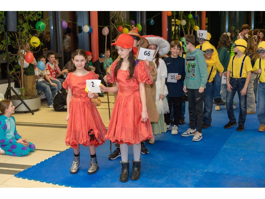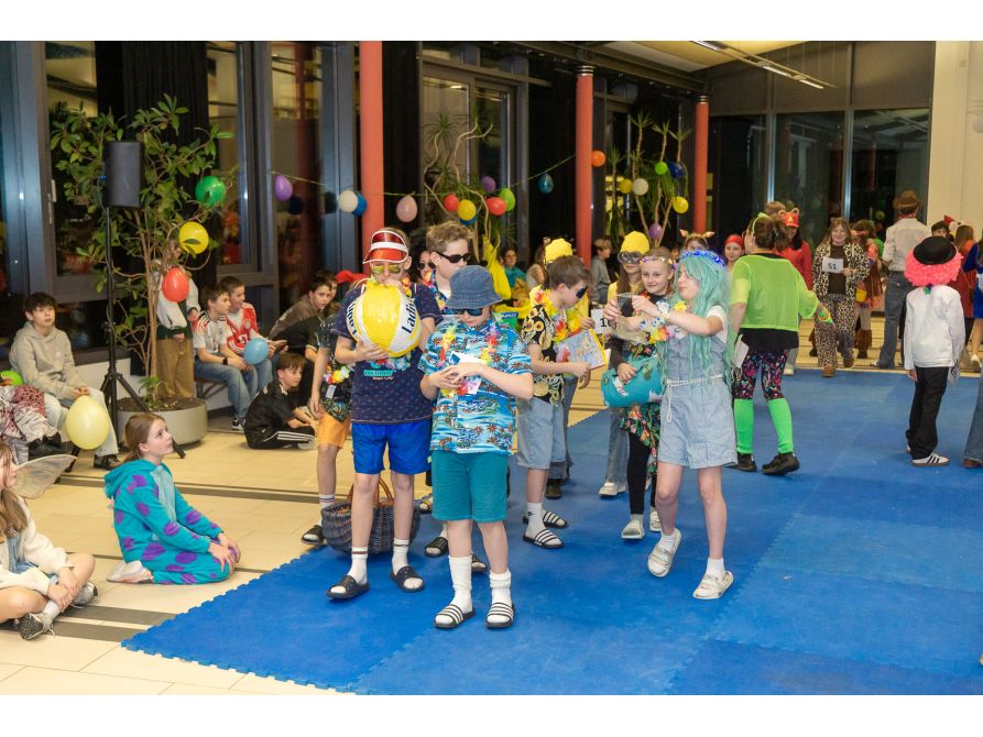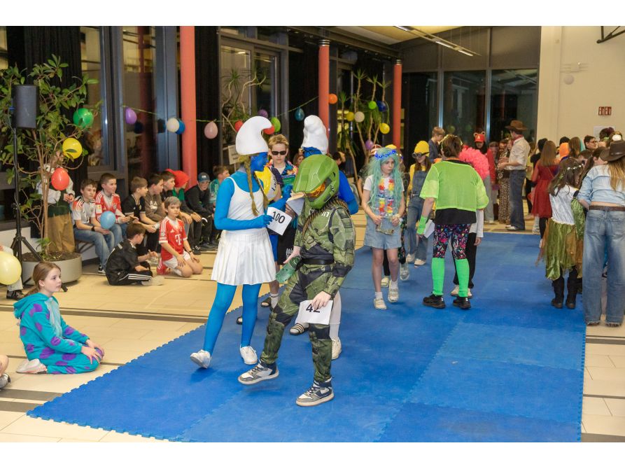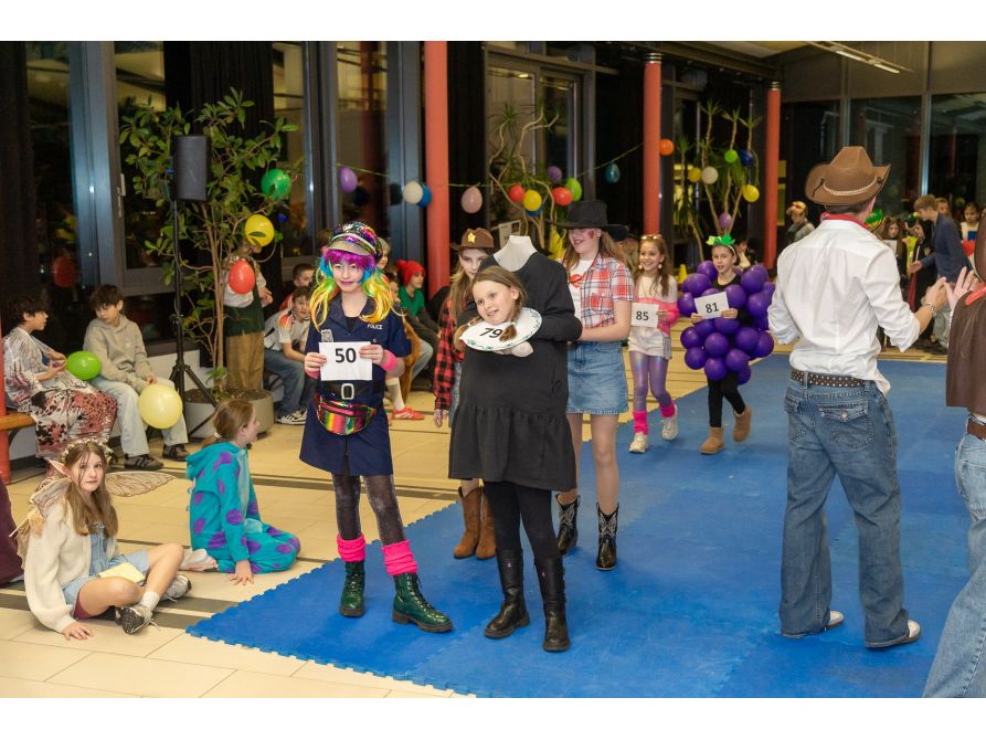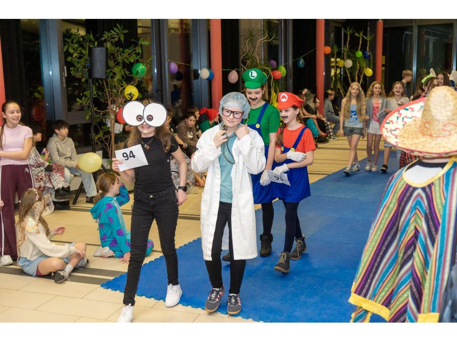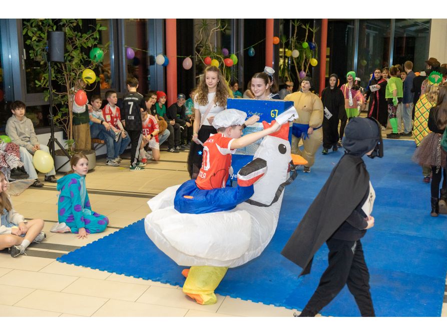 Elf Spielestationen sorgten für Unterhaltung: Beim Bobbycar-Rennen jagten die Teilnehmenden um die Wette, während beim Faschingsquiz Fachwissen gefragt war. Vom Sackhüpfen bis Limbotanz waren alle zum Mitmachen motiviert. Auch einige kostümierte Lehrkräfte hatten sich unter das Partyvolk gemischt.