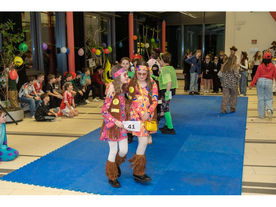 Ein weiteres Highlight des Abends war sicher für viele die Disco in der vollgefüllten Pausenhalle. Kräftig angeheizt wurde dabei die Stimmung vor allem von einigen Tutorinnen und Tutoren, die gemeinsam mit den fantasievoll kostümierten Kindern zu aktuellen Faschingshits ausgelassen tanzten.